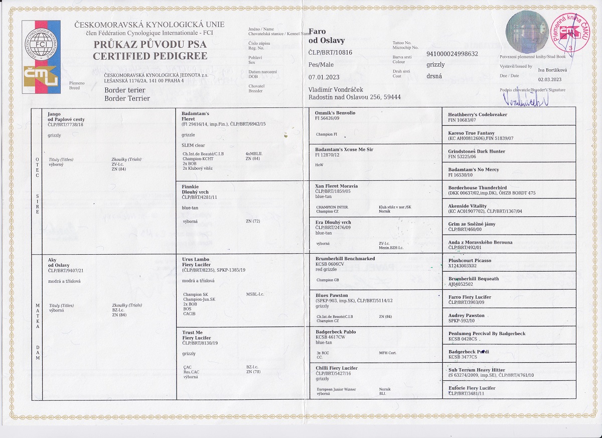 | Datum | Výstava | Rozhodčí | Třída | Ocenění |