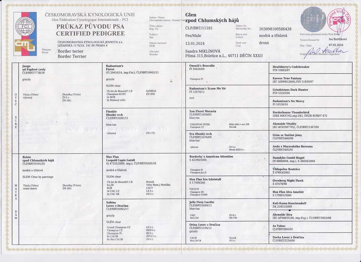 | 26.04.2025 | Mezinárodní (CACIB) České Budějovice/ | Olga Dolejšová/CZ | mladých | V2 |